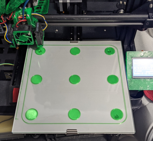 Once the corners are leveled properly, the mesh can be calibrated using a similar test pattern, but with a circle at each mesh point.