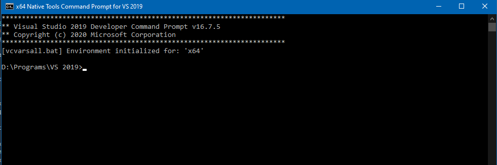 D:\Programs\VS 2019\VC\Auxiliary\Build\vcvars64.bat